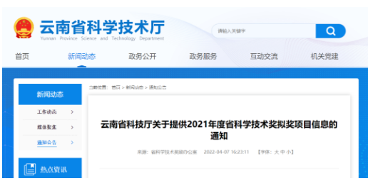 云南科技廳稱,獎項評審結(jié)果已報送省政府,將于近期審定發(fā)布。